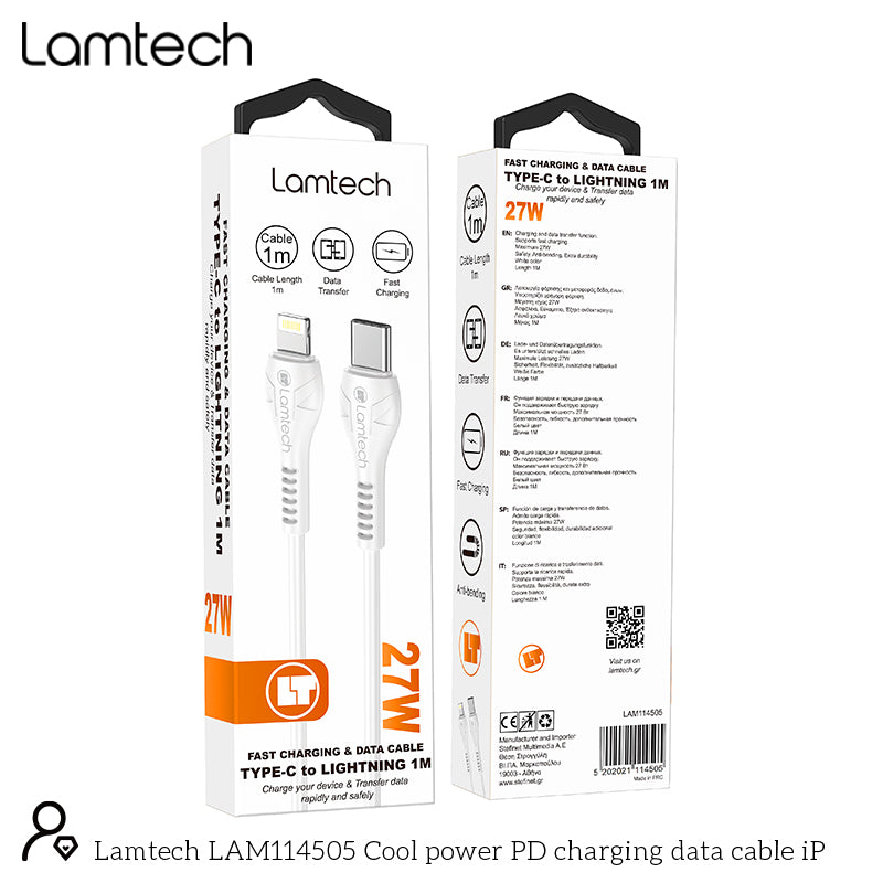 Lamtech Fast Charging And Data Cable Type C To Lightning 1 M 27 W White