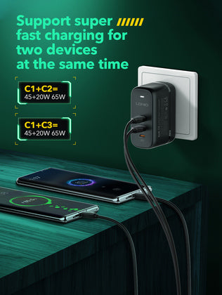 -3x θύρες εξόδου USB-C, με μέγιστη απόδοση 65W