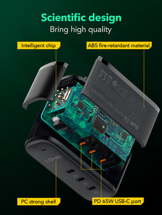 Διαθέτει 3x θύρες εξόδου USB-C που υποστηρίζουν φόρτιση με μέγιστη συνολική απόδοση 65W.