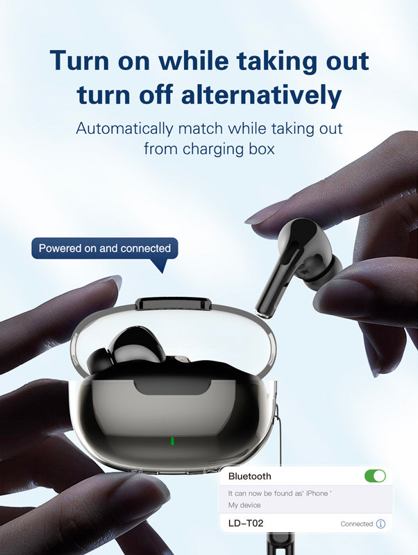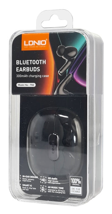 Τα true wireless earphones T02 της LDNIO προσφέρουν κορυφαία ποιότητα ήχου με τεχνολογία μείωσης θορύβου και άριστη εφαρμογή στο αυτί. Είναι συμβατά με tablets, smartphones και άλλες συσκευές που διαθέτουν Bluetooth.
