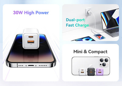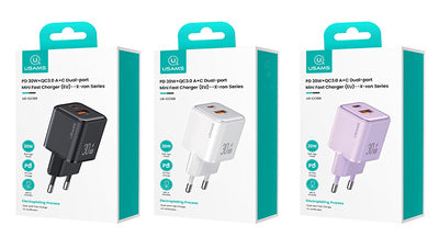 USAMS φορτιστής τοίχου US-CC189, USB & USB-C, 30W PD, μωβ