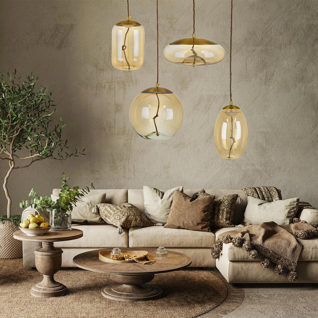 GLOBOSTAR® ΑΧΤΟΝ 00750 Μοντέρνο Κρεμαστό Φωτιστικό Οροφής LED 7W 500lm 180° AC 220-240V IP20 Θερμό Λευκό 2700K - Sanan SMD Chip - Μελί & Χρυσό - Μ30 x Π30 x Υ15cm - 2 Χρόνια Εγγύηση