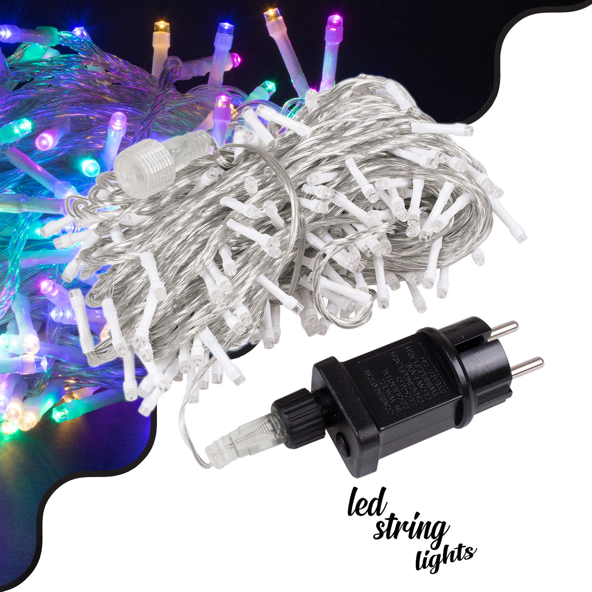 85838 Διακοσμητική Γιρλάντα 23 Μέτρα με Controller 8 Προγραμμάτων Εναλλαγών Φωτισμού - Επεκτεινόμενη 200 LED 3.6W AC 230V με Διάφανο Καλώδιο & Πρίζα Schuko Αδιάβροχη IP44 RGB Μ23m