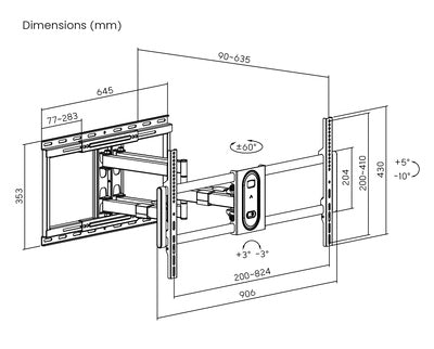 BRATECK επιτοίχια βάση LPA80-486A για τηλεόραση 43-100" έως 80kg, full motion
