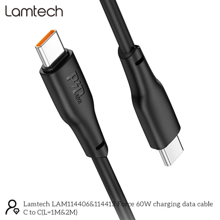 Lamtech Charge And Data Cable Type C To Type C 60 W 2 M Black