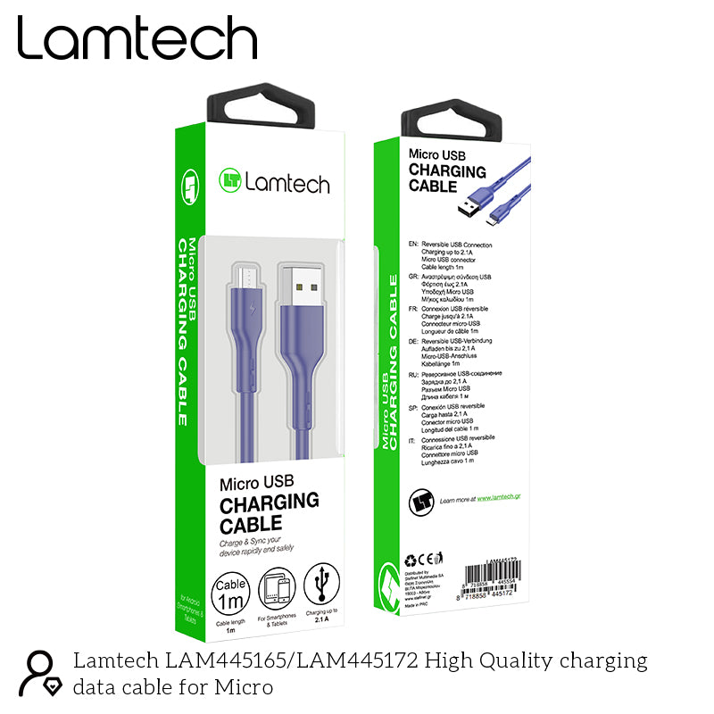 Lamtech Datacable Micro Usb 1m Blue
