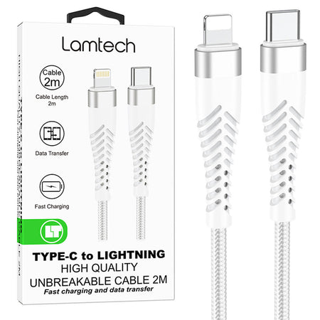Lamtech Hq Unbreakable Cable Type C To Lightning White 2 M