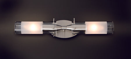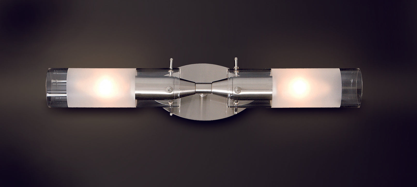 Σατινέ γυαλί διαφανές. Βάση ματ νίκελ.
