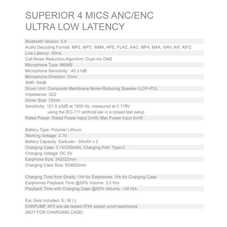 Πάρε τον έλεγχο της ηχητικής σου εμπειρίας με τα SonicGear EarPump XP2, τα ευέλικτα True Wireless ακουστικά που προσφέρουν λειτουργία τόσο σε 2.4 GHz wireless όσο και σε Bluetooth 5.4. Εξοπλισμένα με ενεργή ακύρωση θορύβου (ANC) και ENC μικρόφωνα, προσφέρουν καθαρό ήχο και άψογη επικοινωνία, ιδανικά για εργασία, ταξίδια ή καθημερινή χρήση. Με αυτονομία έως και 32 ώρες, είναι σχεδιασμένα για να ακολουθούν τον ρυθμό της ημέρας σου.