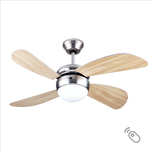 Ανεμιστήρας οροφής 3 ταχυτήτων με ένα φως E27 και τηλεχειριστήριο σε χρώμα ξύλου και μέταλλο MONICA