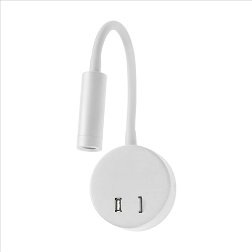 ΑΠΛΙΚΑ ΣΤΡΟΓΓΥΛΗ ΣΠΙΡΑΛ LED & USB 3W 3000k ΛΕΥΚΟ BEDSIDE