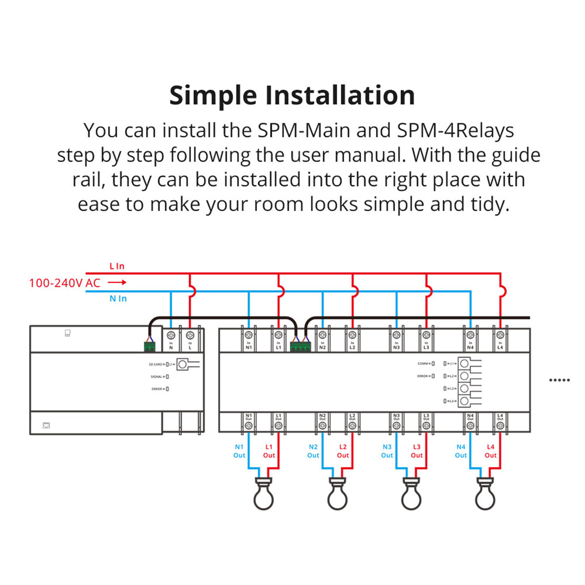 Extra Informations - Επιπλέον Πληροφορίες : THIS PRODUCT IS THE MAIN UNIT. SPM 4-RELAY units are sold separately. They all fit onto DIN rail of an electric cabinet, and provide smart control and power metering feature with max. performance of 20A per gang, as well as, overload protection for all gangs. It is a high performance professional smart home tool to manage homes, office buildings, industrial buildings or even shopping malls to keep track of residents or tenants power consumption. The SPM Main unit communicates with the eWeLink cloud through Ethernet or Wi-Fi, and communicates with the SPM-4relay modules via RS-485, which allows multi-terminal and stanle long term data transmission. One main unit can work with up to 32 pcs. of 4-relay units, so has a total support of 128 x 20A channel management and power metering. The device has an SD card slot, you may insert an SDHC memory card (not included with the product) to store up to 180 days consumption data and check the data via HTTP API. Data can also be exported.