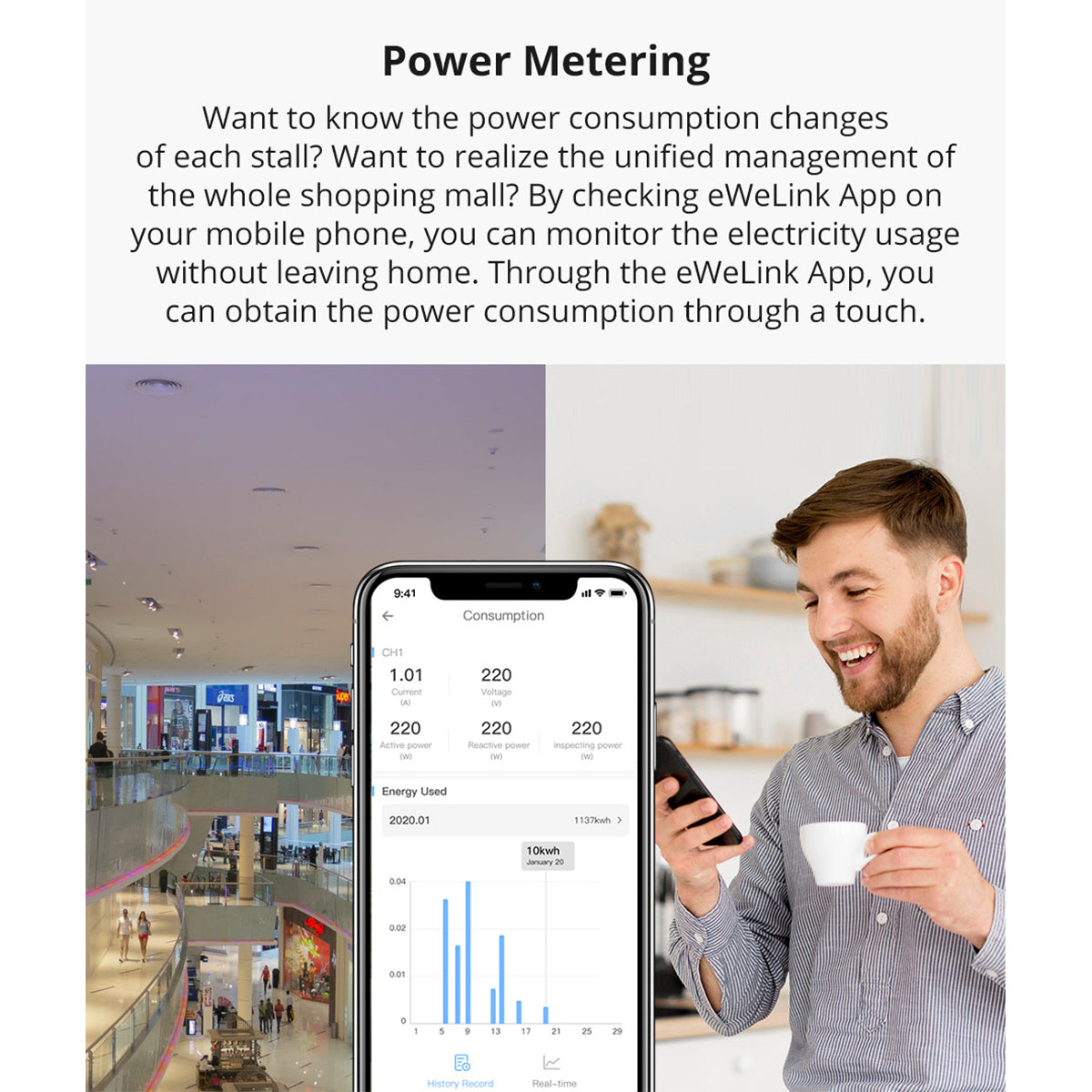 Extra Informations - Επιπλέον Πληροφορίες : SONOFF Smart Stackable Power Meter works with the usual eWelink app for Android and iOS to allow you to visualize the data which can also be stored in a MicroSD card. There’s also an HTTP API to read the data, which should eventually be documentation on the developer’s website. I suspect the solution may soon end up being supported by ESPHome or Tastoma open-source firmware projects provided it is indeed based on ESP8266 or ESP32 chip.