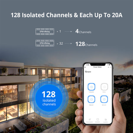 GloboStar® 80056 SONOFF SPM-4RELAY - Wi-Fi Smart Stackable Power Meter