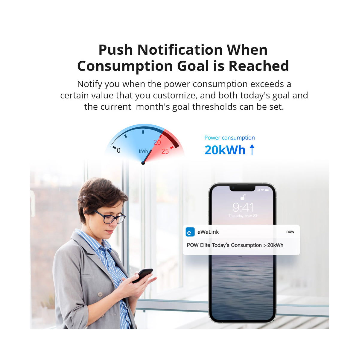 GloboStar® 80079 SONOFF POW Elite POWR316D Smart WiFi Real Time Power Consumption AC 100-240V MAX 16A