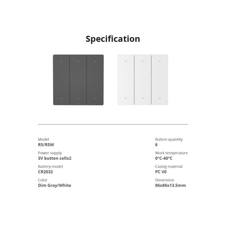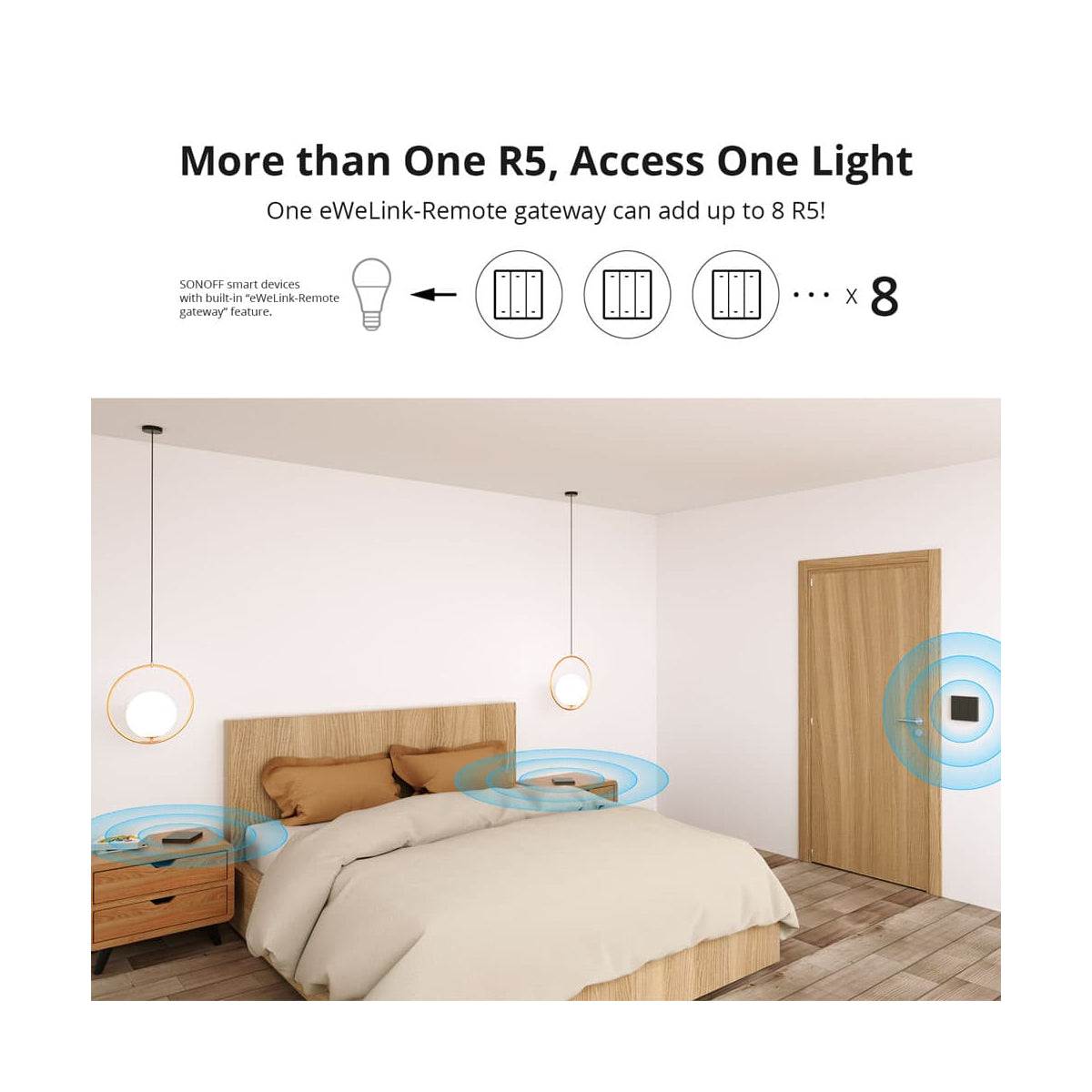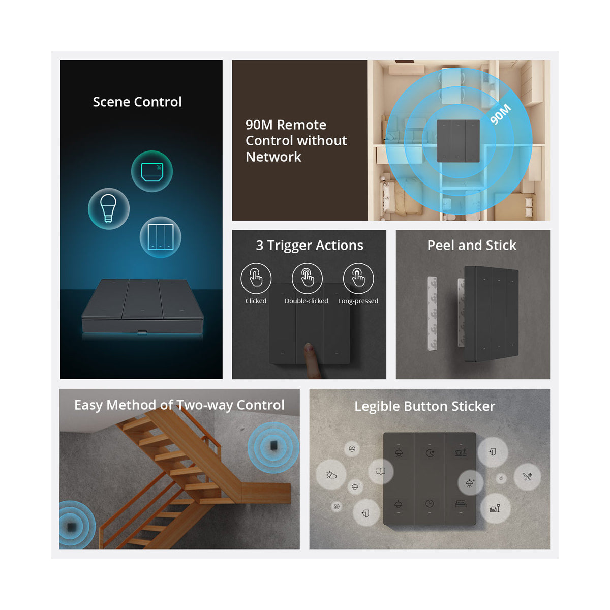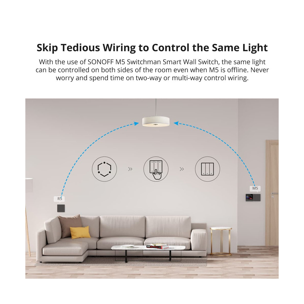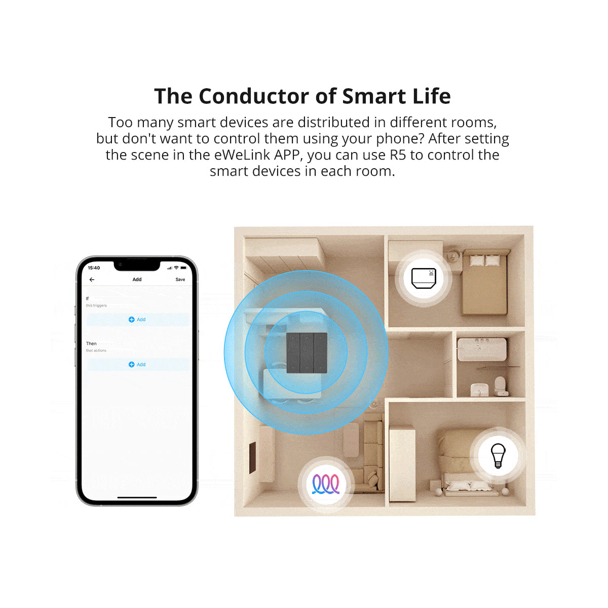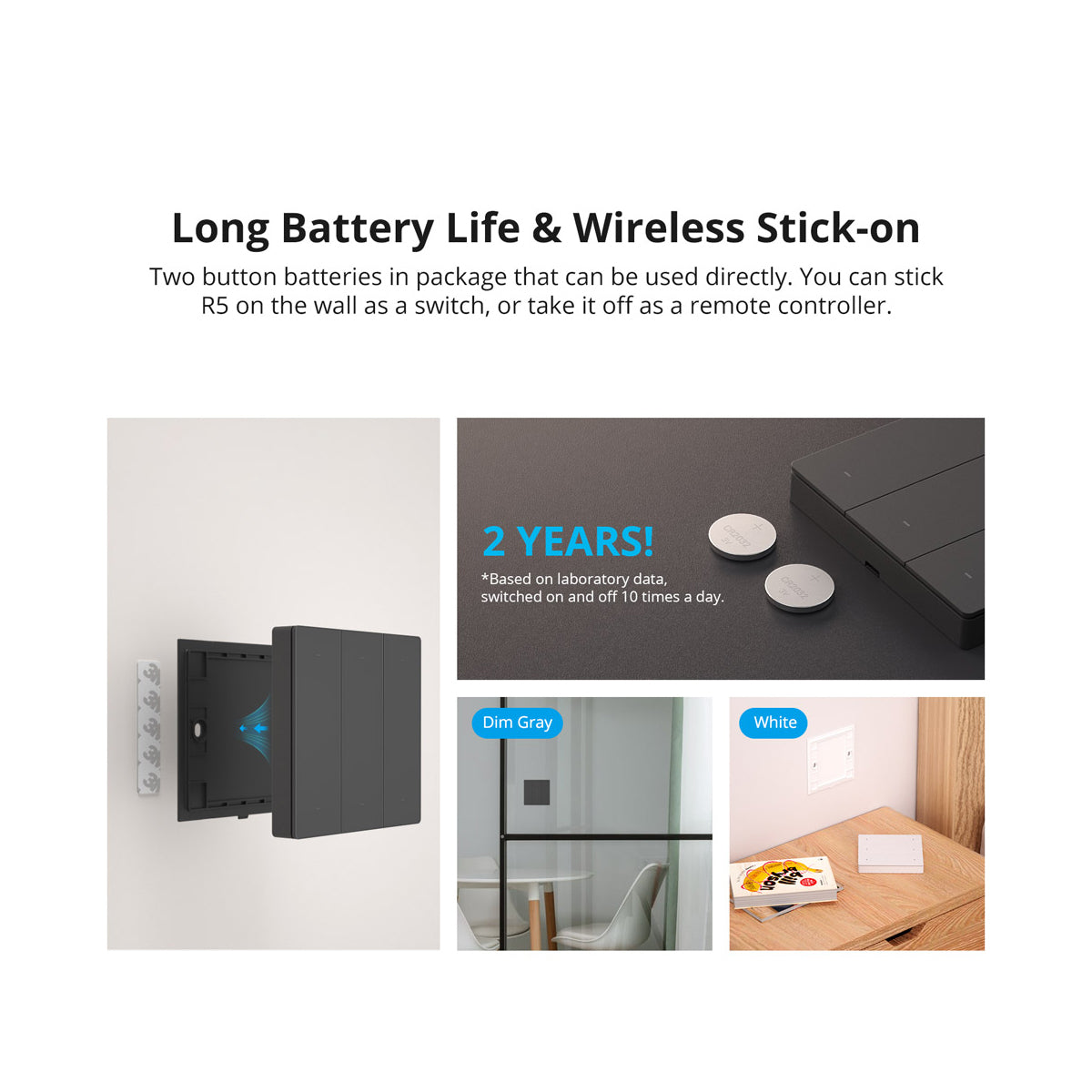 GloboStar® 80093 SONOFF R5-3C Free Wiring eWeLink Remote Switchman Smart Wall Stick-On Switch WiFi With 2 x Battery 3V 2032 3 Way