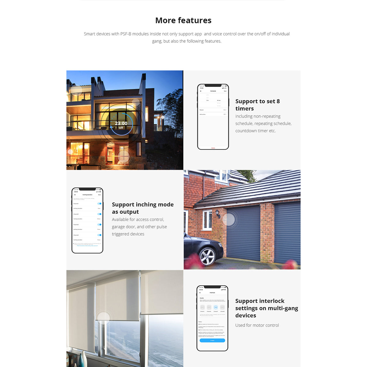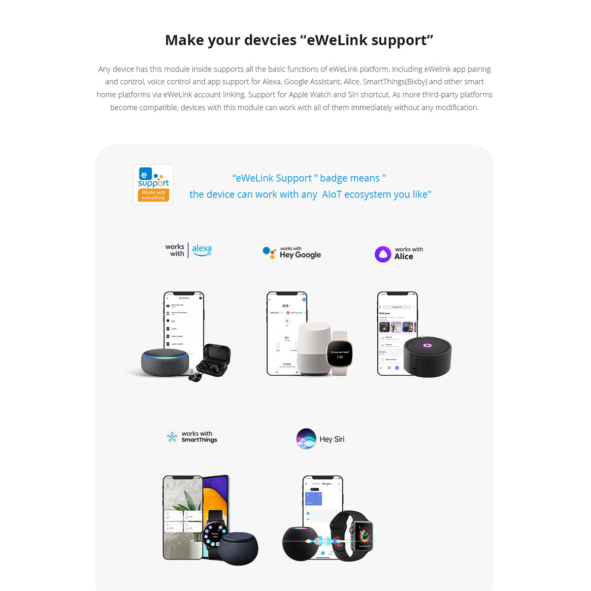 Compatible with - Συμβατό με : Remote Control, Single/Countdown Timing, Voice Control, Share Control, Smart scene, Stepless dimming, Scene Mode, “eWeLink Remote” Control, Group control, LAN Control