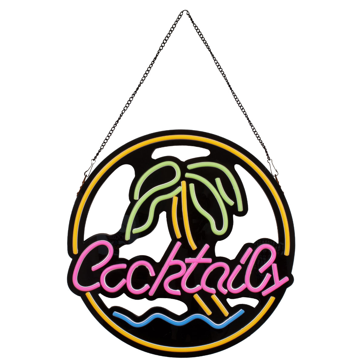 GloboStar® 85851 Φωτιστικό Ταμπέλα Φωτεινή Επιγραφή NEON LED Σήμανσης COCKTAILS 30W AC 230V με Διακόπτη On/Off Ροζ - Γαλάζιο - Κίτρινο - Πράσινο