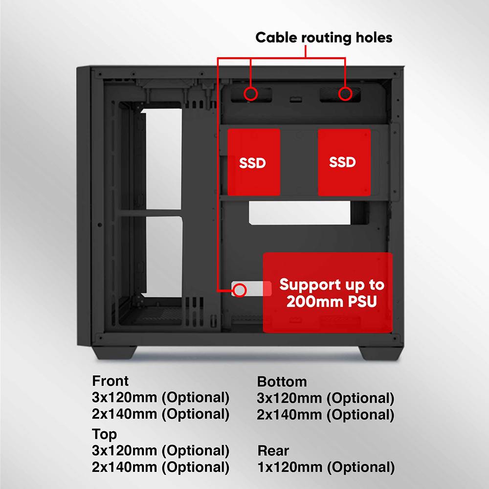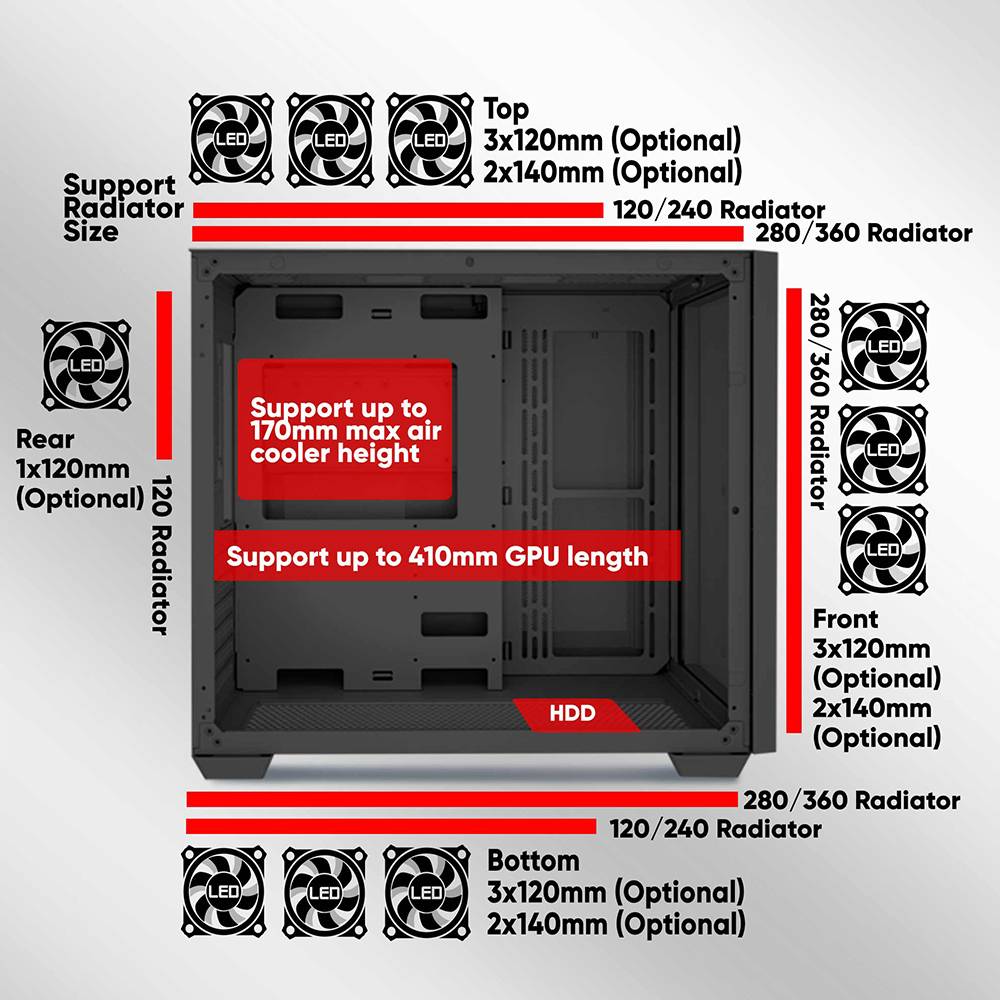 Υποστήριξη Ανεμιστήρων: Υποστήριξη έως 10 x 120mm ή 6 x 140mm ανεμιστήρων (Οι ανεμιστήρες δεν περιλαμβάνονται)