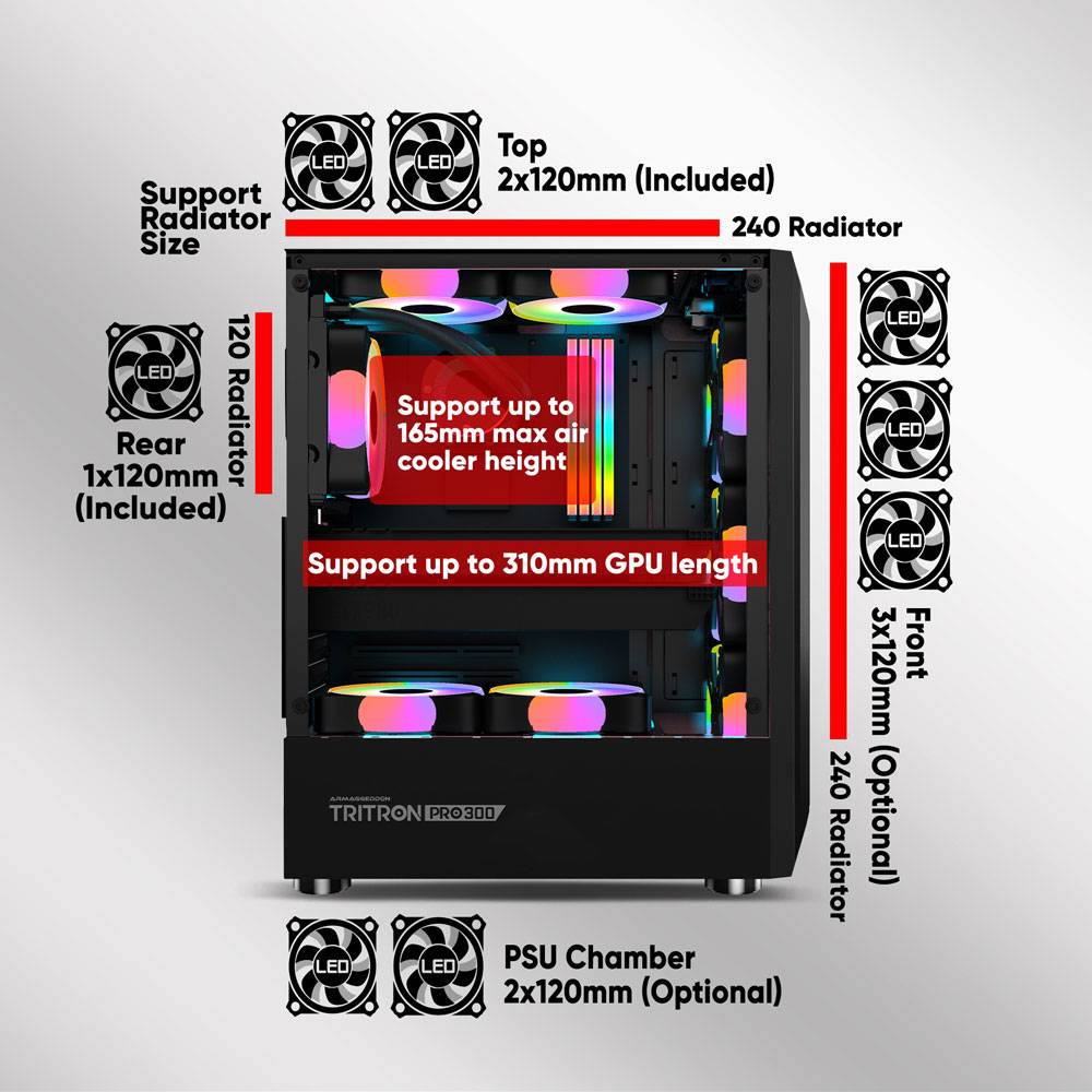 Armaggeddon Gaming Pc Case With 3 Argb Fans Tritron Pro 300 White