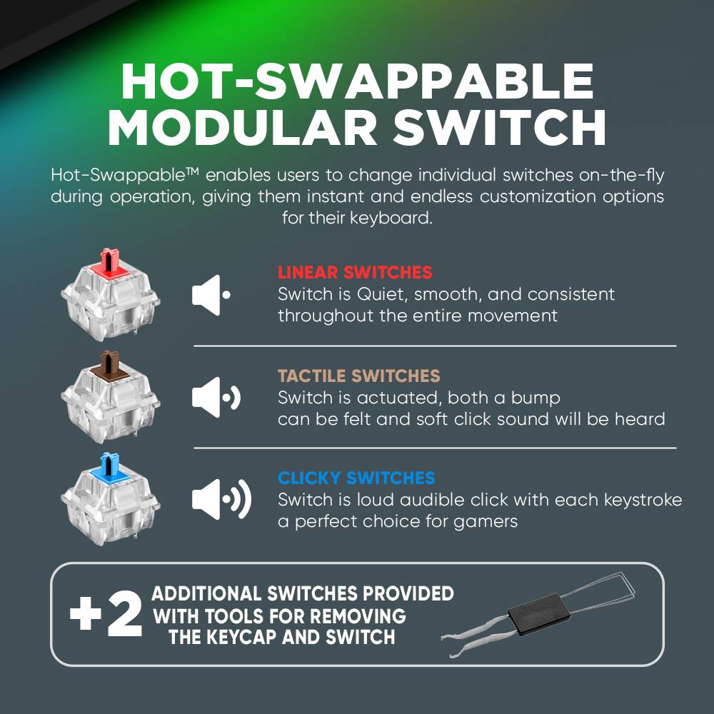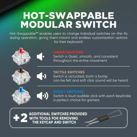 Hot-Swappable Modular Switches: Αντικαταστήστε τα πλήκτρα χωρίς να χρειάζεστε drivers ή τεχνική υποστήριξη, με Tactile Brown Switches για ικανοποιητική αίσθηση και ακριβή απόκριση.