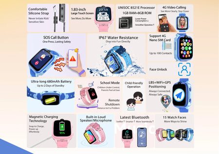 Το Blackview Z10 KidWatch είναι ο απόλυτος συνδυασμός τεχνολογίας, ασφάλειας και διασκέδασης για τα παιδιά σας. Σχεδιασμένο για να διατηρεί τους μικρούς εξερευνητές συνδεδεμένους και προστατευμένους, αυτό το smartwatch προσφέρει προηγμένες λειτουργίες επικοινωνίας, εντοπισμού θέσης και ανθεκτικότητας.