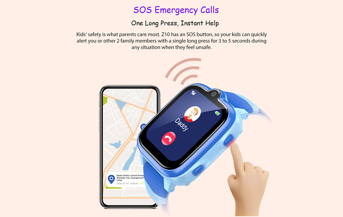 Το Blackview Z10 παρέχει λειτουργίες που επιτρέπουν στους γονείς να ελέγχουν τη θέση του παιδιού τους, να επικοινωνούν άμεσα και να αισθάνονται ήρεμοι, γνωρίζοντας ότι έχουν τον πλήρη έλεγχο.