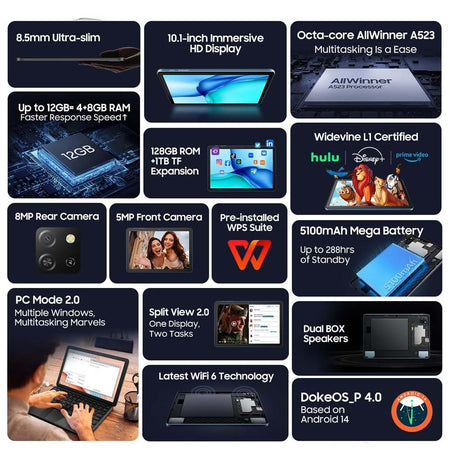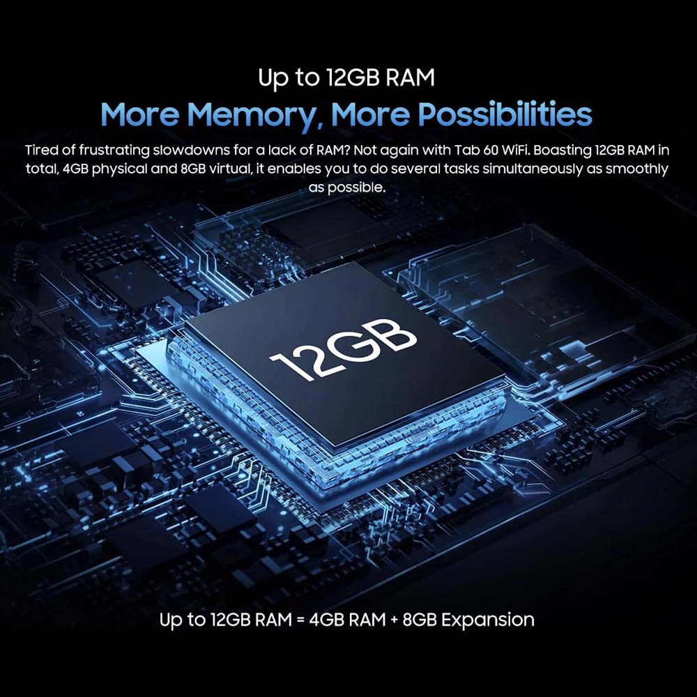 Με οκταπύρηνο επεξεργαστή AllWinner A523 και έως 12GB RAM (4GB φυσική + 8GB επέκταση), το Tab 60 WiFi ανταποκρίνεται σε κάθε εργασία χωρίς καθυστερήσεις.