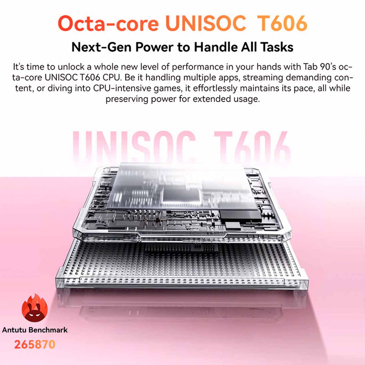λεπτό σώμα, το Tab 90 είναι άνετο στη χρήση και εύκολο στη μεταφορά παντού. Η αίσθηση της πολυτέλειας συνδυάζεται με την ανθεκτικότητα και τη λειτουργικότητα, κάνοντάς το ιδανικό για καθημερινή χρήση, εργασία ή παιχνίδι.