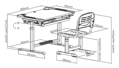 BRATECK σετ παιδικό γραφείο και καρέκλα B301, ρυθμιζόμενο, γκρι
