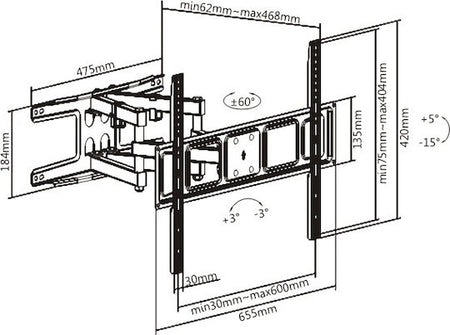 Η βάση πλήρους κίνησης LPA63-466 είναι ιδανική για σχεδόν κάθε επίπεδη οθόνη 37" - 80" έως 40 κιλά.