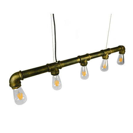 GloboStar® CANAL 01669 Vintage Industrial Κρεμαστό Φωτιστικό Οροφής Πολύφωτο Μπρούτζινο Μεταλλικό Ράγα Μ92 x Π5 x Y8cm
