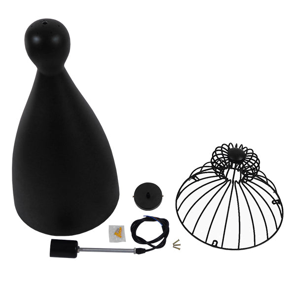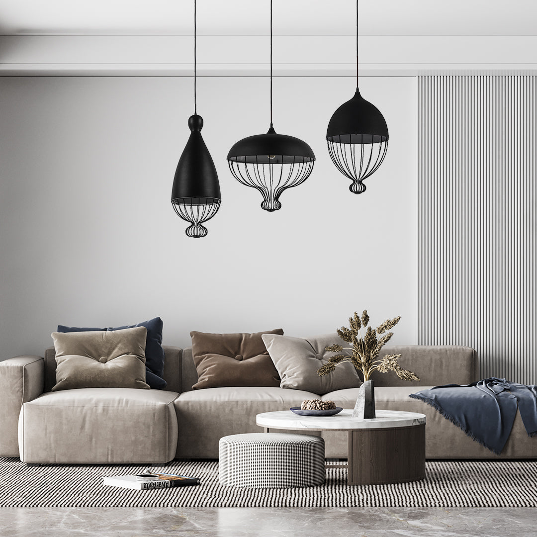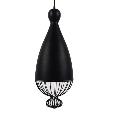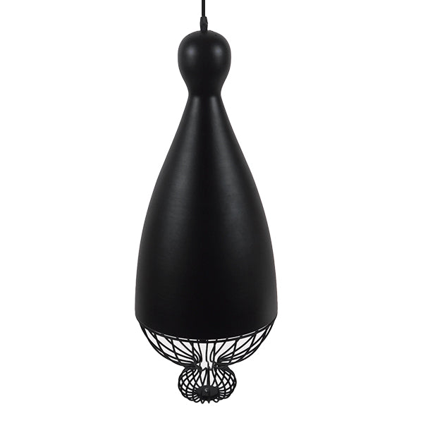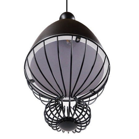 GloboStar® CARNEL 01106 Vintage Κρεμαστό Φωτιστικό Οροφής Μονόφωτο Μαύρο Μεταλλικό Πλέγμα Φ26 x Y70cm