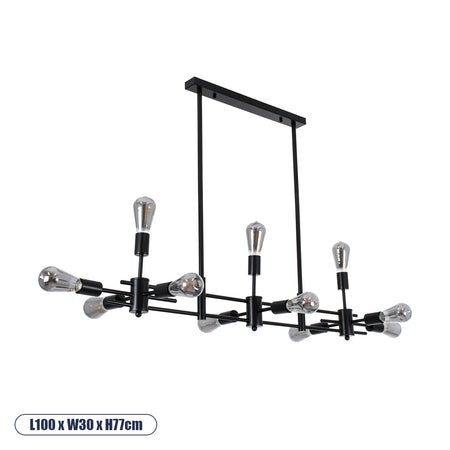 GLOBOSTAR® FERUM 01098 Μοντέρνο Φωτιστικό Οροφής με Ντουί 11 x E27 AC 220-240V IP20 - Μαύρο - Μ100 x Π30 x Υ77cm