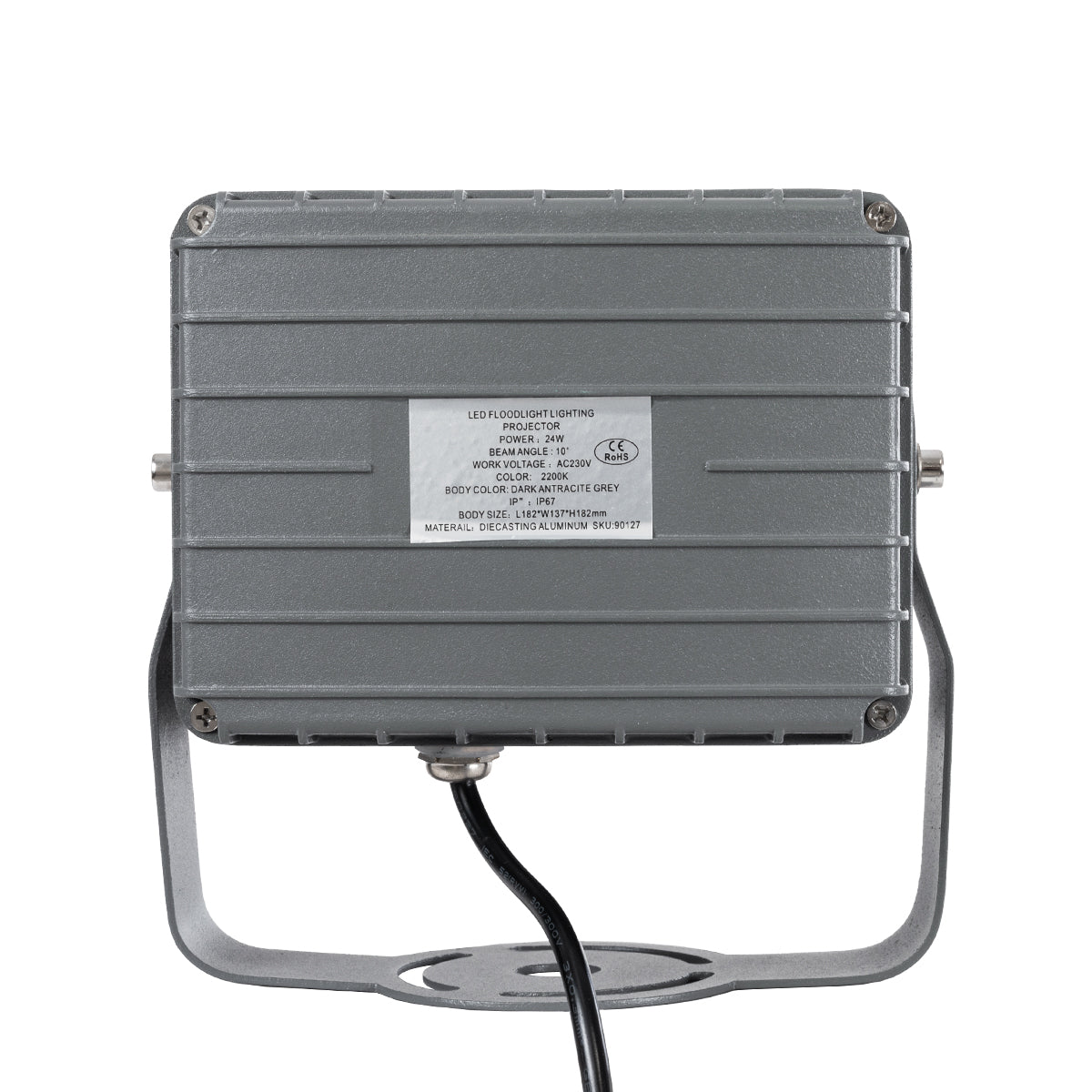 GLOBOSTAR® FLOODXENA 90127 Προβολέας Σποτ Wall Washer LED 24W 2520lm 10° AC 220-240V Αδιάβροχο IP65 Ultra Θερμό Λευκό 2200K - Bridgelux SMD Chip - Γκρι Ανθρακί - Μ18 x Π13.5 x Υ18cm - 3 Χρόνια Εγγύηση