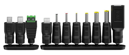 Universal φορτιστής της Goobay για την φόρτιση και τροφοδοσία ηλεκτρικών συσκευών. Διαθέτει 7 διαφορετικά βύσματα τροφοδοσίας και αντάπτορες USB, USB-C, micro USB, USB mini και screw terminal connection.