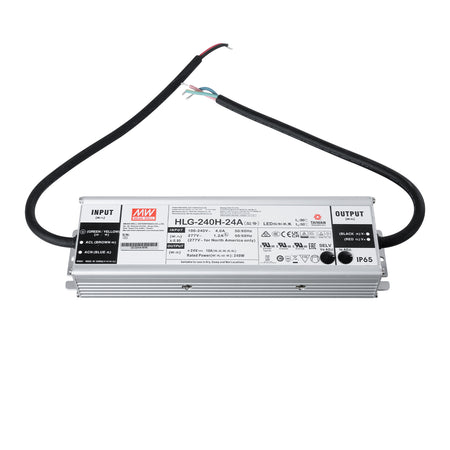 GLOBOSTAR® MEANWELL-HLG240H-24A 90793 Τροφοδοτικό/Μετασχηματιστής SELV 240W 10A DC 24V Αδιάβροχο IP65 - AC 220-240V σε DC 24V / Ρυθμιζόμενο από 22.4VDC έως 25.6VDC - Μ24.4 x Π6.8 x Υ3.88cm - 3 Χρόνια Εγγύηση