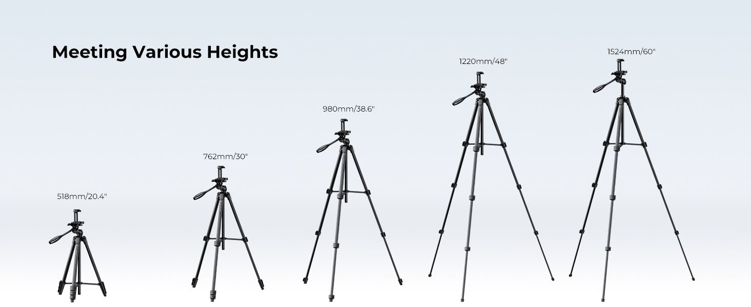 Ρυθμιζόμενο ύψος: Προσαρμόστε το ύψος από 52 έως 152εκ., προσαρμοσμένο σε διάφορες ανάγκες λήψης.