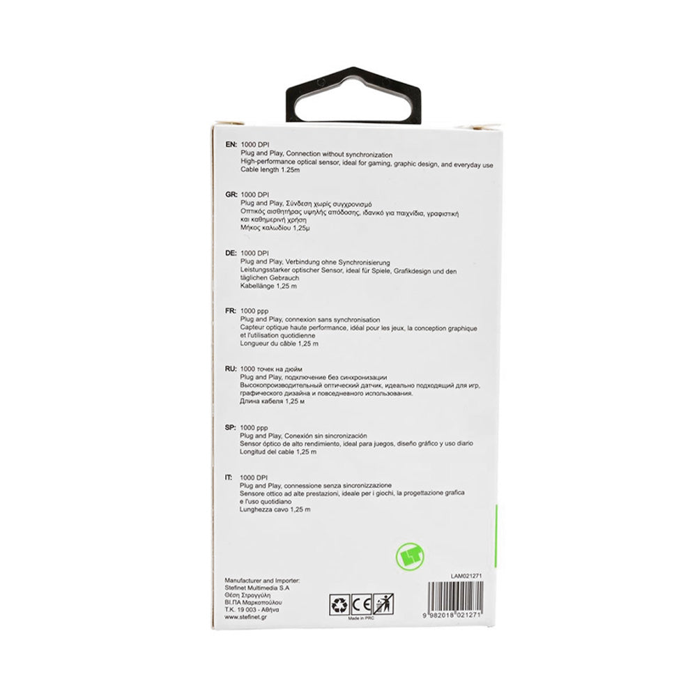 Ανάλυση 1000 DPI για ομαλή και ακριβή κίνηση του δείκτη.