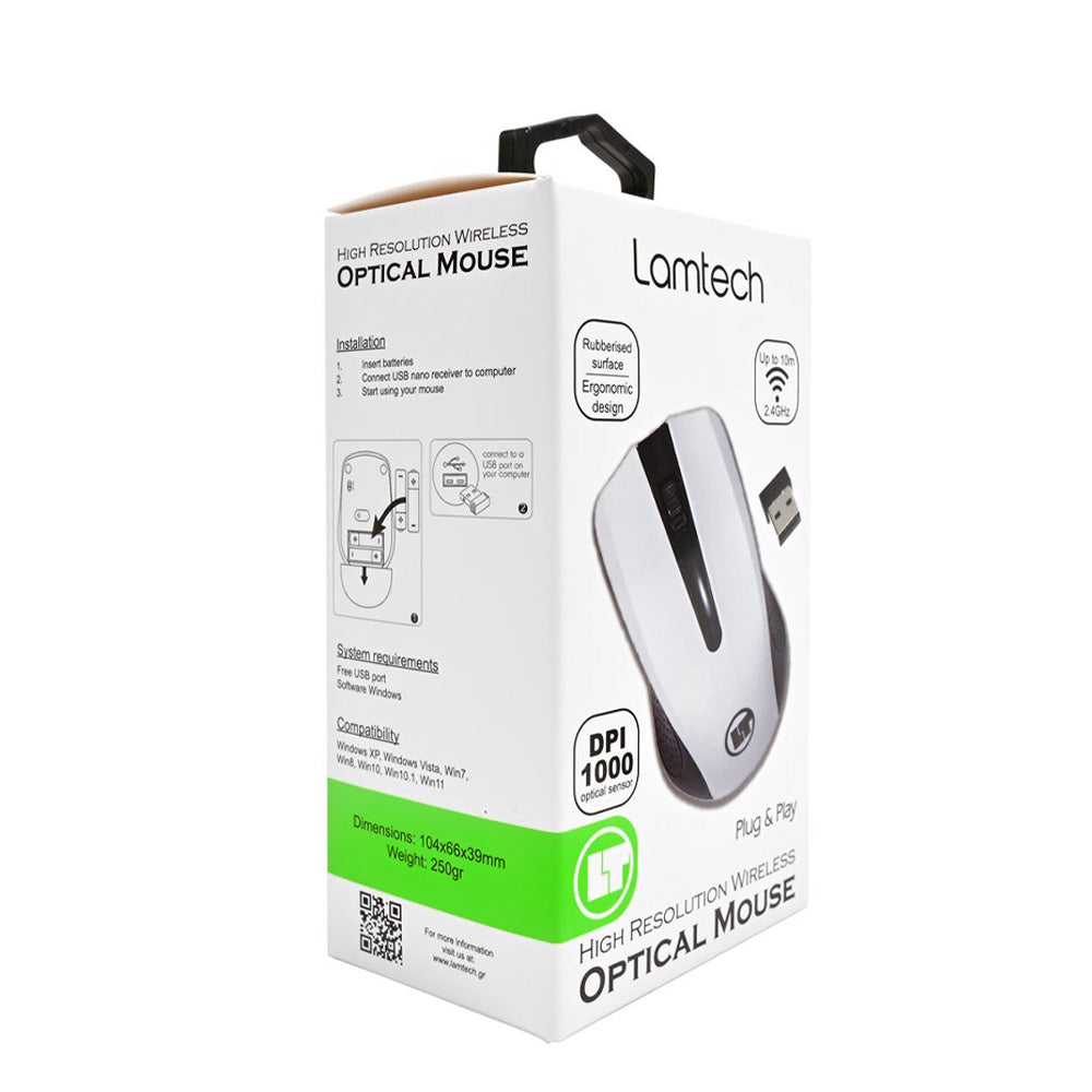 Αναβαθμίστε την εμπειρία σας με το LAMTECH 2.4G WIRELESS MOUSE, συνδυάζοντας ακρίβεια, ευκολία και εργονομία σε ένα κομψό λευκό σχέδιο!