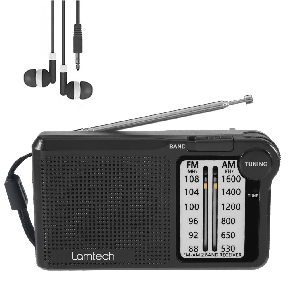 Lamtech 2 Band Fm/Am Radio With Earphones Jack Black