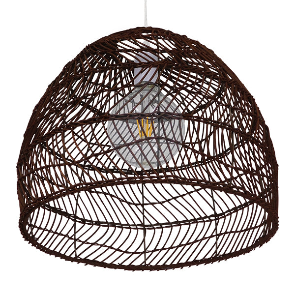 GloboStar® MALIBU 00970 Vintage Κρεμαστό Φωτιστικό Οροφής Μονόφωτο Καφέ Ξύλινο Bamboo Φ40 x Y35cm