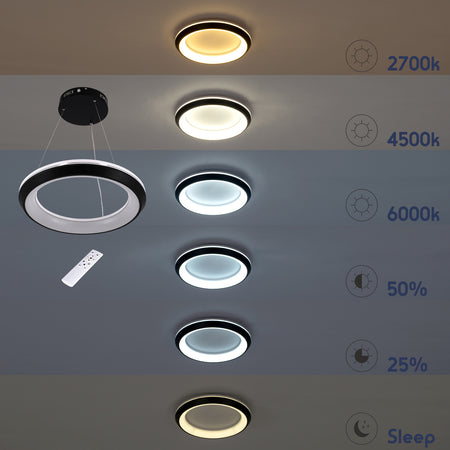 GLOBOSTAR® MELINA 61043 Μοντέρνο Κρεμαστό Φωτιστικό Οροφής LED 55W 6376lm 120° AC 220-240V IP20 Ρυθμιζόμενο Λευκό CCT με Χειριστήριο από 2700K έως 6000K Dimmable - Lumileds SMD Chip - Μαύρο Ματ - Μ48 x Π48 x Υ6.5cm - 3 Χρόνια Εγγύηση