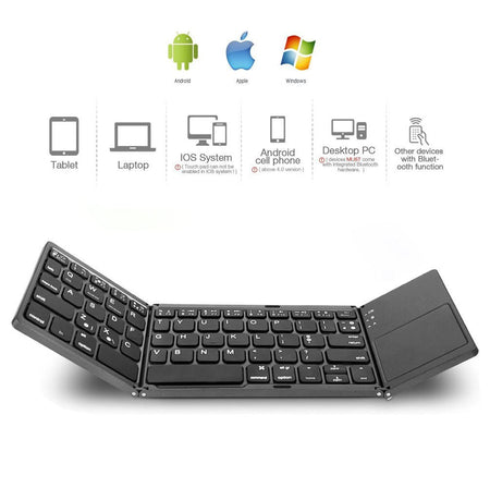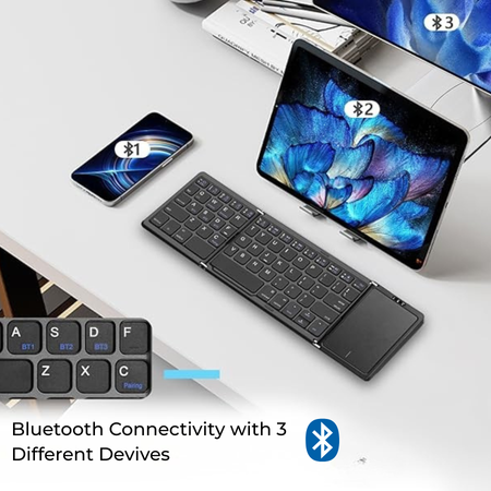 Αναβαθμίστε την εμπειρία σας στην πληκτρολόγηση με το μοντέλο B033 Plus, ένα έξυπνα σχεδιασμένο, τρεις φορές πτυσσόμενο (tri-fold) πληκτρολόγιο Bluetooth, με ενσωματωμένο touchpad, σχεδιασμένο για εύκολη φορητότητα & χρήση με laptop, tablet, smartphone και Smart TV.