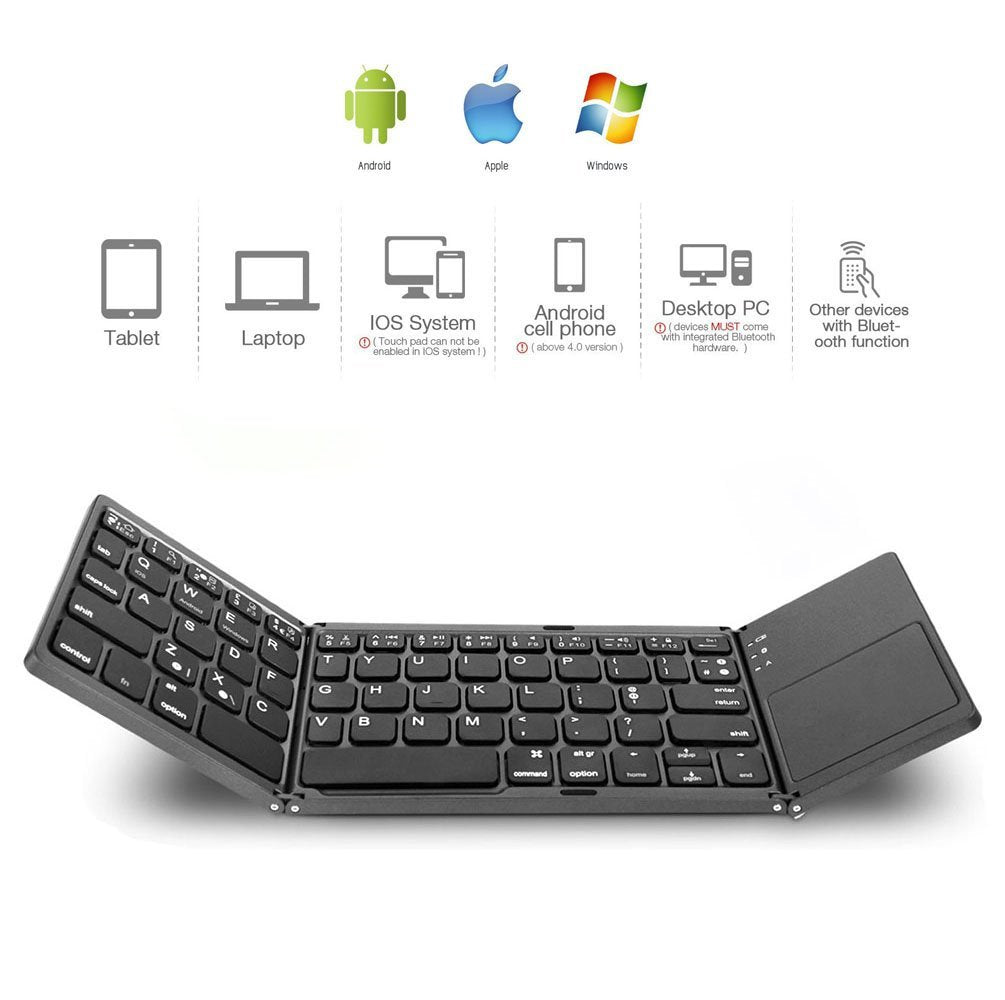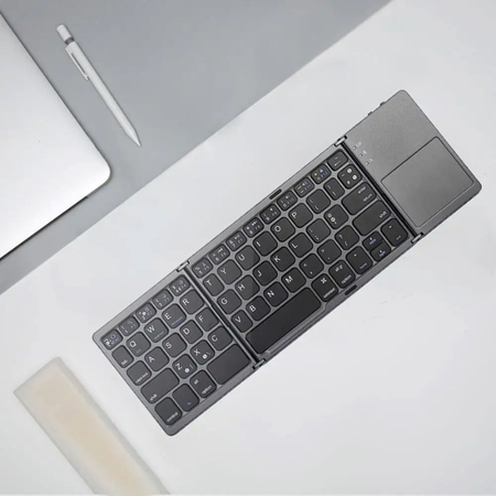 Πτυσσόμενο Ασύρματο Mini Πληκτρολόγιο Bluetooth Με Touchpad Για Tablet, Smartphone, TV, Laptop Γκρι
