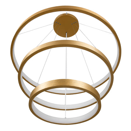 GLOBOSTAR® NEMESIS TRIO 61172-DECO Μοντέρνο Κρεμαστό Φωτιστικό Οροφής LED 120W 14723lm 360° AC 220-240V IP20 Ρυθμιζόμενο Λευκό CCT με Χειριστήριο από 2700K έως 6000K Dimmable - Lumileds SMD Chip - Χρυσό Βούρτσας - Μ80 x Π80 x Υ80cm - 3 Χρόνια Εγγύηση