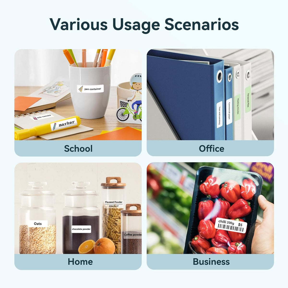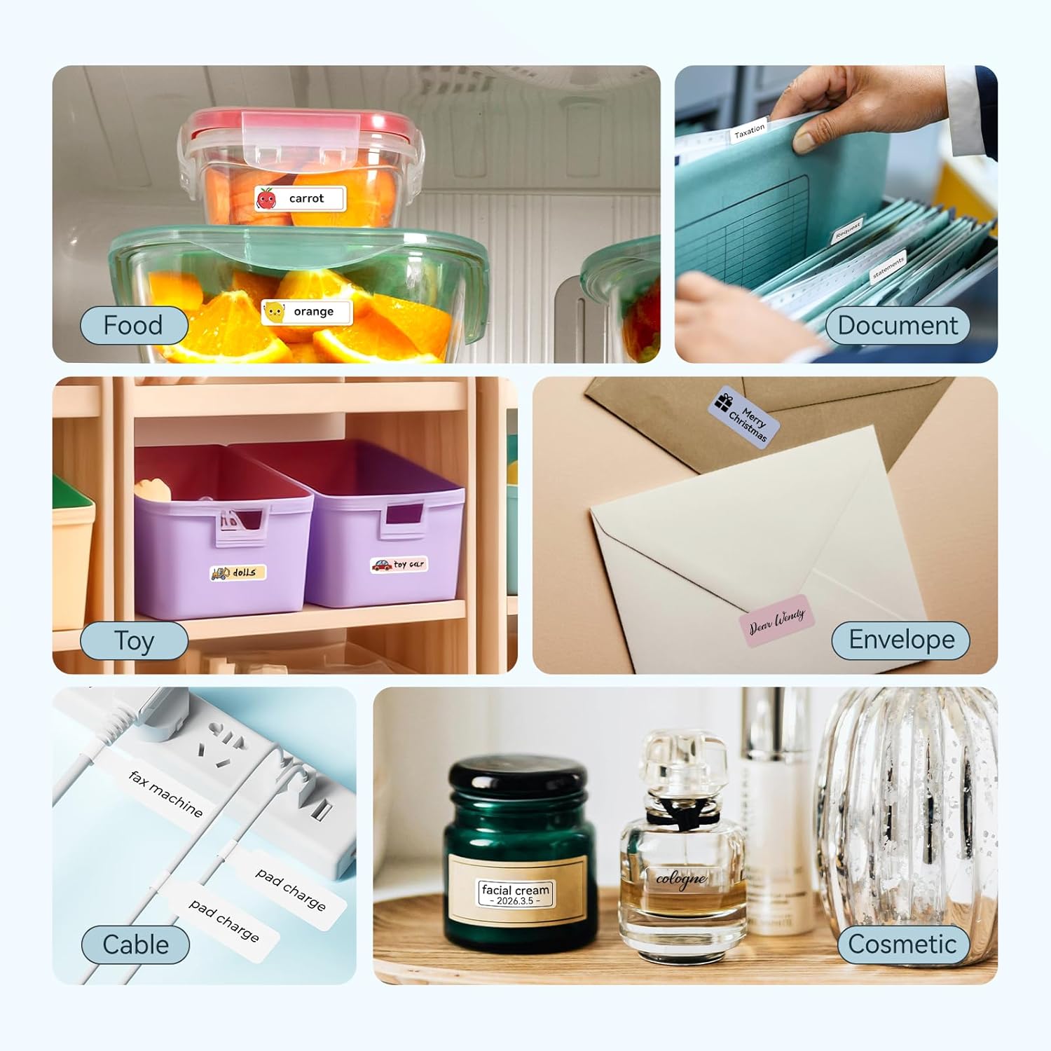 • Ευρεία Χρήση: Υποστηρίζει εκτύπωση ετικετών με πλάτος έως 15mm. Ιδανικός για διάφορες εφαρμογές όπως οργάνωση σπιτιού, κατηγοριοποίηση αρχείων στο γραφείο και μικρές επιχειρήσεις. Ιδανικός για ετικέτες βάζων, ετικέτες ημερομηνίας τροφίμων, καλλυντικά, προσωπικά αντικείμενα, ετικέτες ονομάτων, αναγνώριση καλωδίων, ετικέτες τιμών και κοσμήματα. Εξαιρετικός και ως προμήθεια για το σχολείο ή ως βοηθός για το σπίτι.
