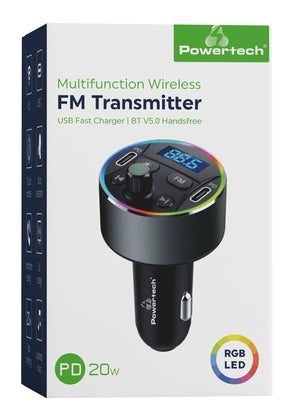POWERTECH FM Transmitter & φορτιστής 40W PT-1027, οθόνη, RGB, Bluetooth