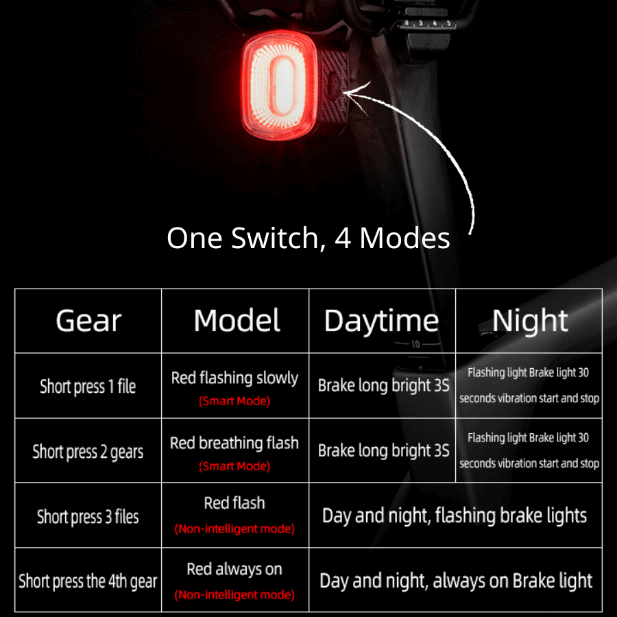 Με έξυπνο αισθητήρα πέδησης, αυξάνει την φωτεινότητά του όταν ενεργοποιείται το φρένο του ποδηλάτου. Επίσης διαθέτει έξυπνο αισθητήρα πίεσης όπου ενεργοποιεί το φωτισμό αυτόματα όταν καταλαβαίνει βάρος στη σέλα του ποδηλάτου.