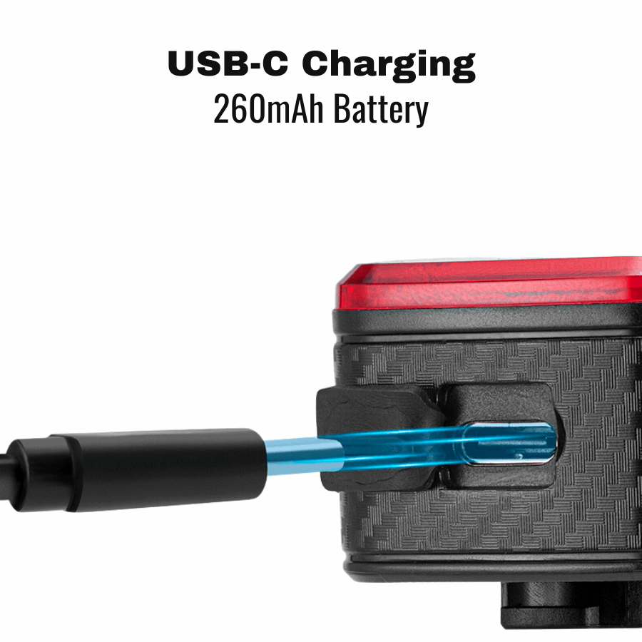Με 4 λειτουργιές φωτισμού(Red Flash Slow, Red Breath Flash, Red Flash, Red Always on) & φόρτιση USB-C μπορεί να διαρκέσει έως & 16 ώρες συνεχόμενα, ανάλογα το φωτισμό(Low light). Με πιεσμένο το κουμί για λίγα δευτερόλεπτα αυξομειώνεται ο φωτισμός από χαμηλό - μεσαίο - δυνατό φωτισμό.